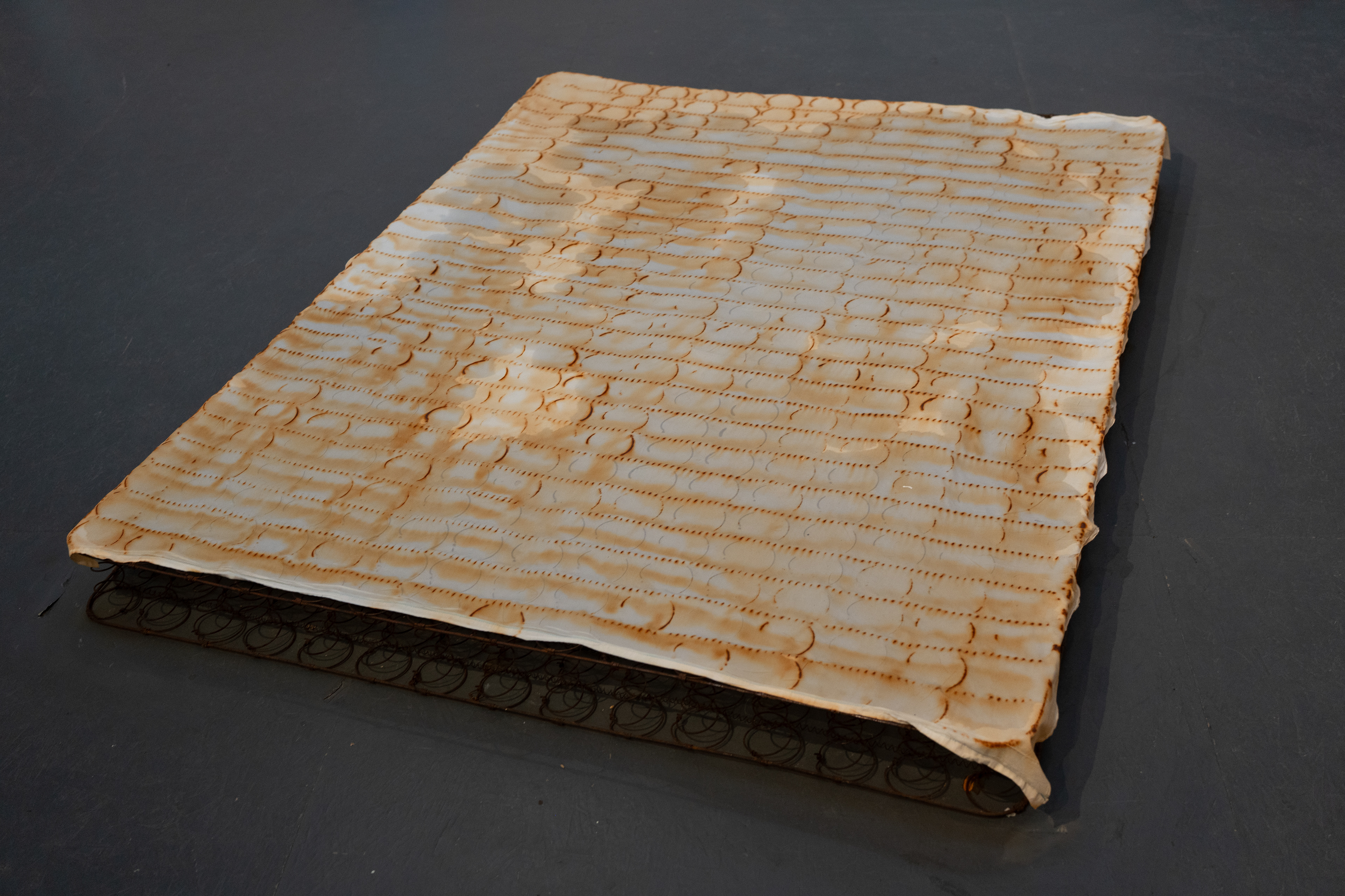 materials: rusted bedspring acquired six years ago at an art collective’s warehouse in albuquerque. cotton cloth from savers. tap water and vinegar. a slow embedding.